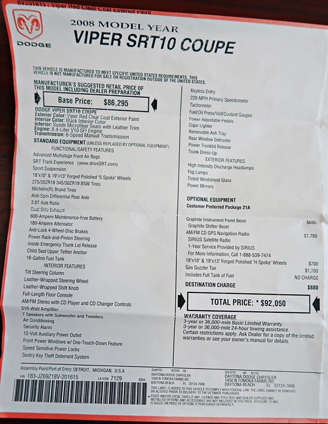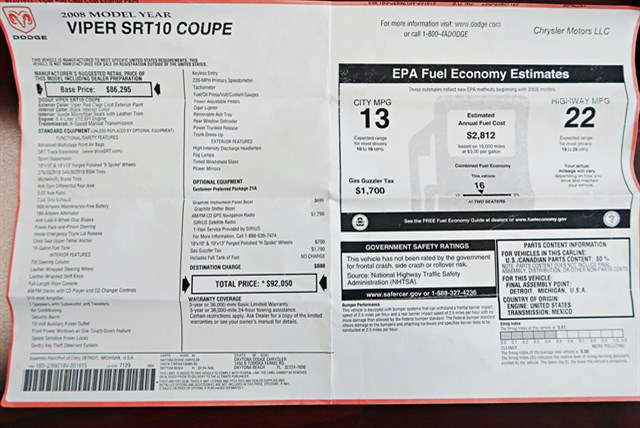 2008 Dodge Viper SRT-10 Coupe Clean Carfax! 1 Owner! Only 1,639 Original Miles!
