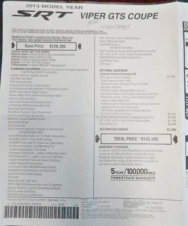 2013 Dodge Viper GTS