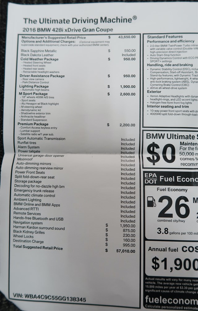 | VIN | WBA4C9C55GG138345 |