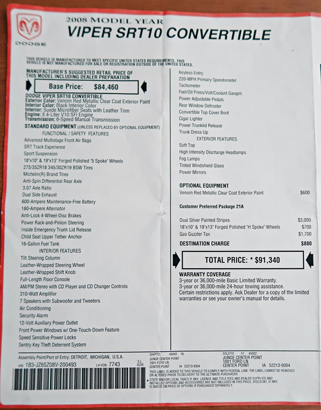 2008 Dodge Viper SRT10 Convertible