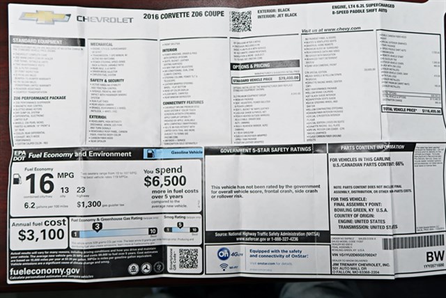 2016 Chevrolet Corvette 3LZ Z06 Coupe Clean Carfax! 1 Owner! C7.R 1 of 500!