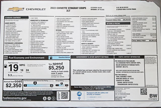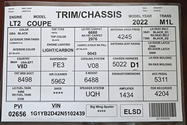Original Window Sticker/Build Sheet